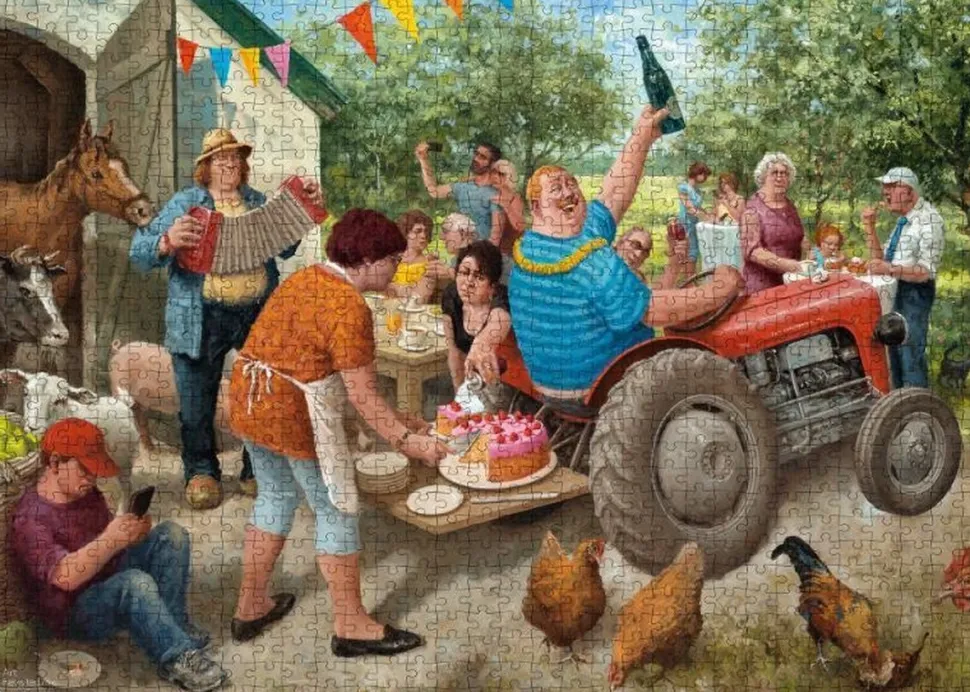 Het humoristisch werk van Marius van Dokkum is zeer geliefd bij (onder andere) legpuzzelaars, zo ook deze Tuinfeest. Herkenning en details van het allerdaagse leven (…en lachen is gezond) dat is waar het om draait. Marius van Dokkum is geboren in 1957 te Andijk en studeerde aan de Christelijke Academie voor Beeldende Kunsten in Kampen. Na de academie, vestigde hij zich met zijn atelier in Apeldoorn. Op 26 mei 2018 opende Marius van Dokkum zijn eigen museum in Harderwijk. Hij is kunstschilder, illustrator, tekenaar en ontwerper.