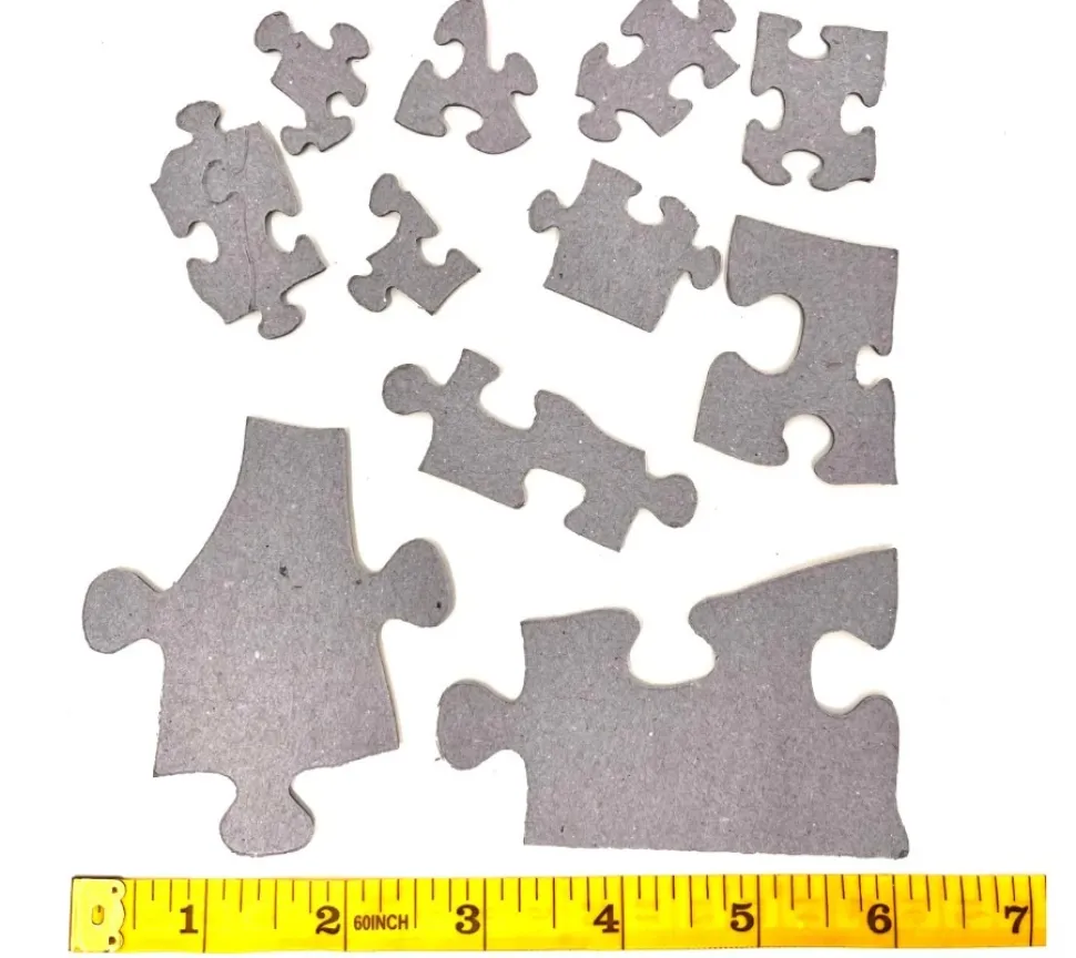 Cobble Hill gebruikt voor het fabriceren van de legpuzzels de “Random Cut” methode. De willekeurig gesneden puzzelstukjes creëren een leuke uitdaging voor puzzelaars die wel eens iets anders willen dan de voorspelbare patronen van een regelmatig gestansde legpuzzel.