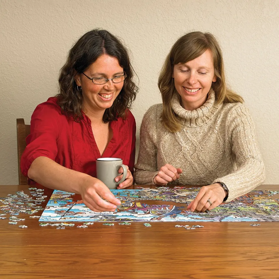 Cobble Hill gebruikt voor het fabriceren van de legpuzzels de “Random Cut” methode. De willekeurig gesneden puzzelstukjes creëren een leuke uitdaging voor puzzelaars die wel eens iets anders willen dan de voorspelbare patronen van een regelmatig gestansde legpuzzel.