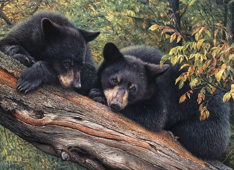 De jonge welpen genieten van hun rustige tijd samen in de takken van de bomen. Ondertussen wacht moeder op hun terugkeer uit het diepe bos. Een prachtige puzzel van 1000 stukjes over wilde dieren.