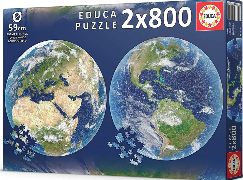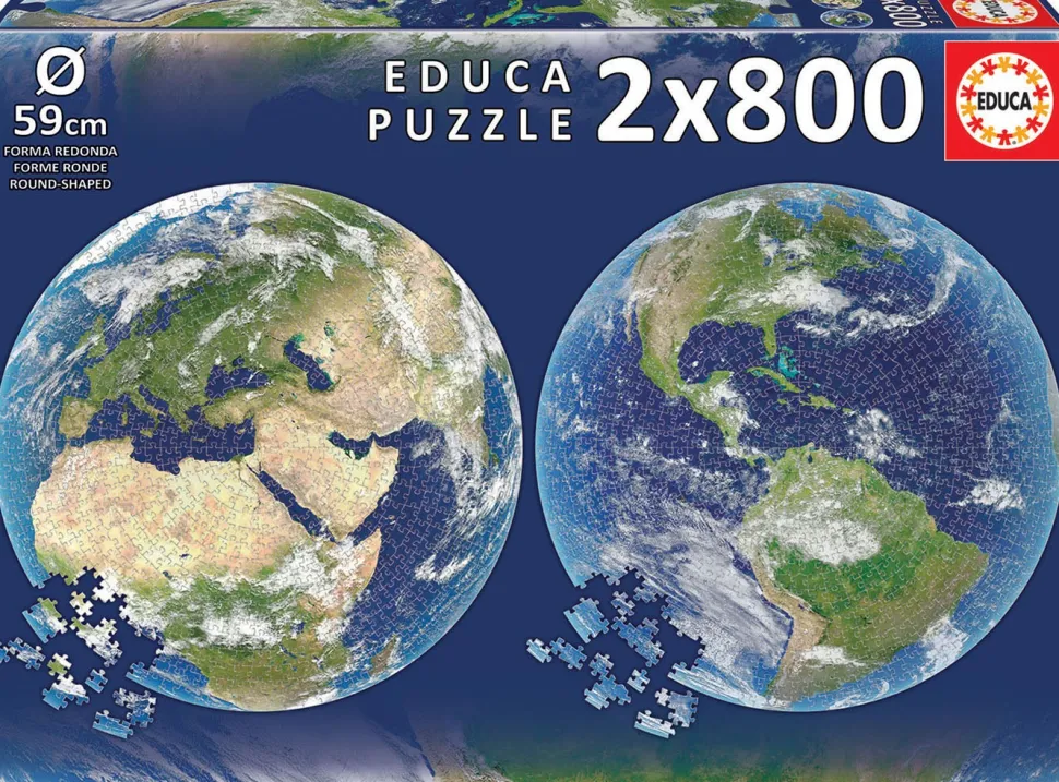 Educa – Legpuzzel – Wereld (Rond, 2x) – 2 x 800 stukjes