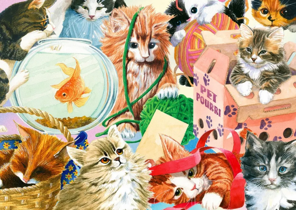 Waarom zou je aan een puzzel werken als je er geen plezier in hebt?! Het leggen van een legpuzzel kost veel tijd, dus de hele ervaring, van de puzzel zelf tot en met de afbeelding, moet leuk en onderhoudend zijn! Uiteindelijk moet je zeggen: ” Ik heb echt genoten van het werken aan deze Nieuwsgierige Katjes puzzel! “, en niet met een bittere nasmaak!