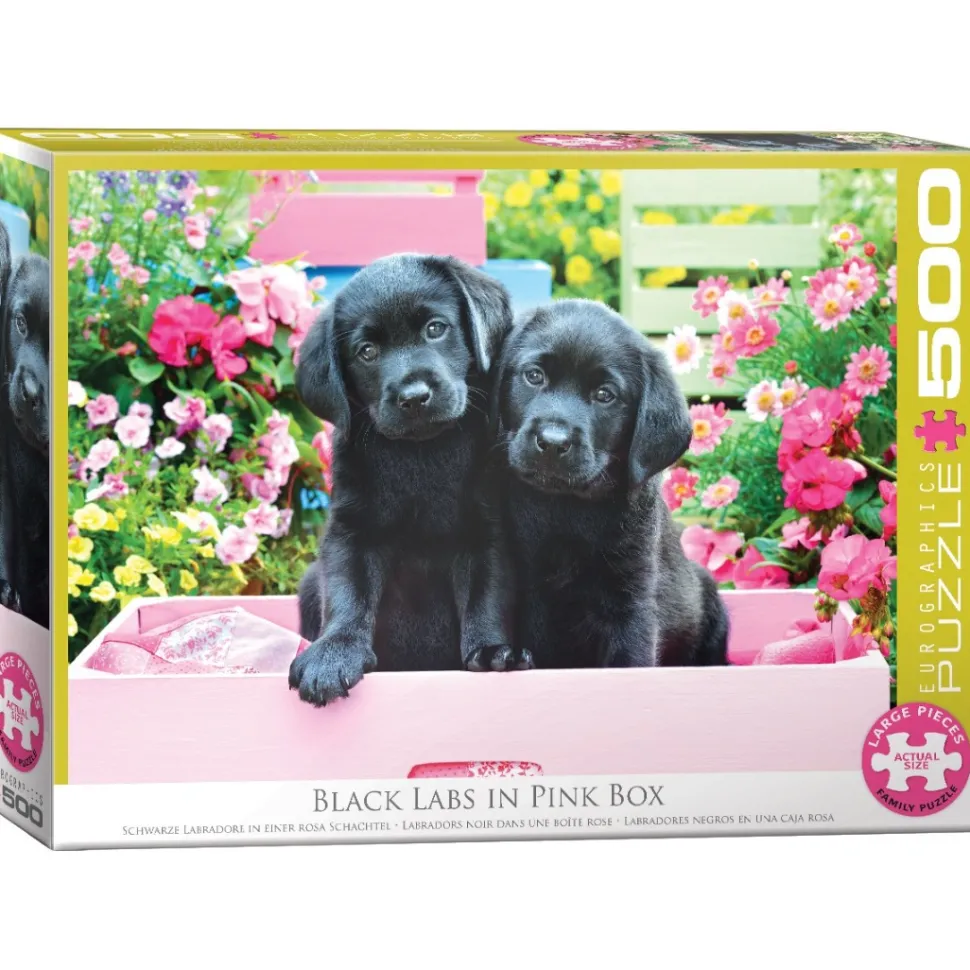 Eurographics – Legpuzzel – Black Labs in Pink Box – 500XL stukjes