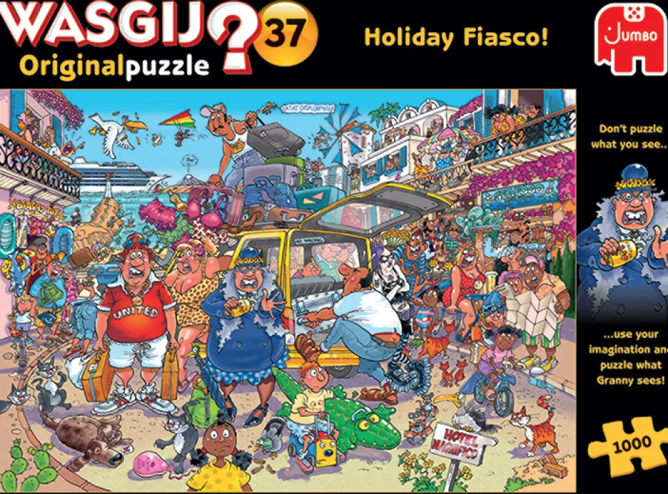 Koninklijke Jumbo ontwikkelt, produceert en verkoopt speelgoed, spellen en puzzels, zoals deze Vakantiefiasco! van Wasgij Original. Jumbo is een unieke Nederlandse onderneming met een rijke historie en veel eigen merken zoals Stratego, PimPamPet, Jan van Haasteren en Wasgij.