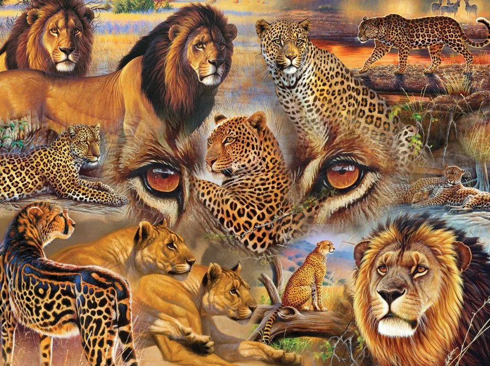 De collectie bevat geen puzzels op basis van foto’s, iedere puzzel is een tekening of schilderij van een artiest, waarvan op basis van een licentie legpuzzels worden gemaakt (licensed artwork). Zo ook deze legpuzzel Big Cats of the Plains.