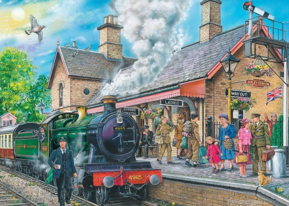 Voor de afbeedingen van de puzzels maakt HOP gebruik van een aantal gerenomeerde kunstenaars zoals bij deze legpuzzel Bringing Them Home van RAY CRESSWELL.