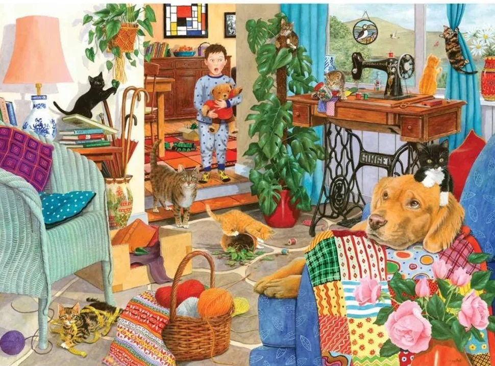 Voor de afbeedingen van de puzzels maakt HOP gebruik van een aantal gerenomeerde kunstenaars en fotograven, zoals deze Kitten Chaos van TRACY HALL.