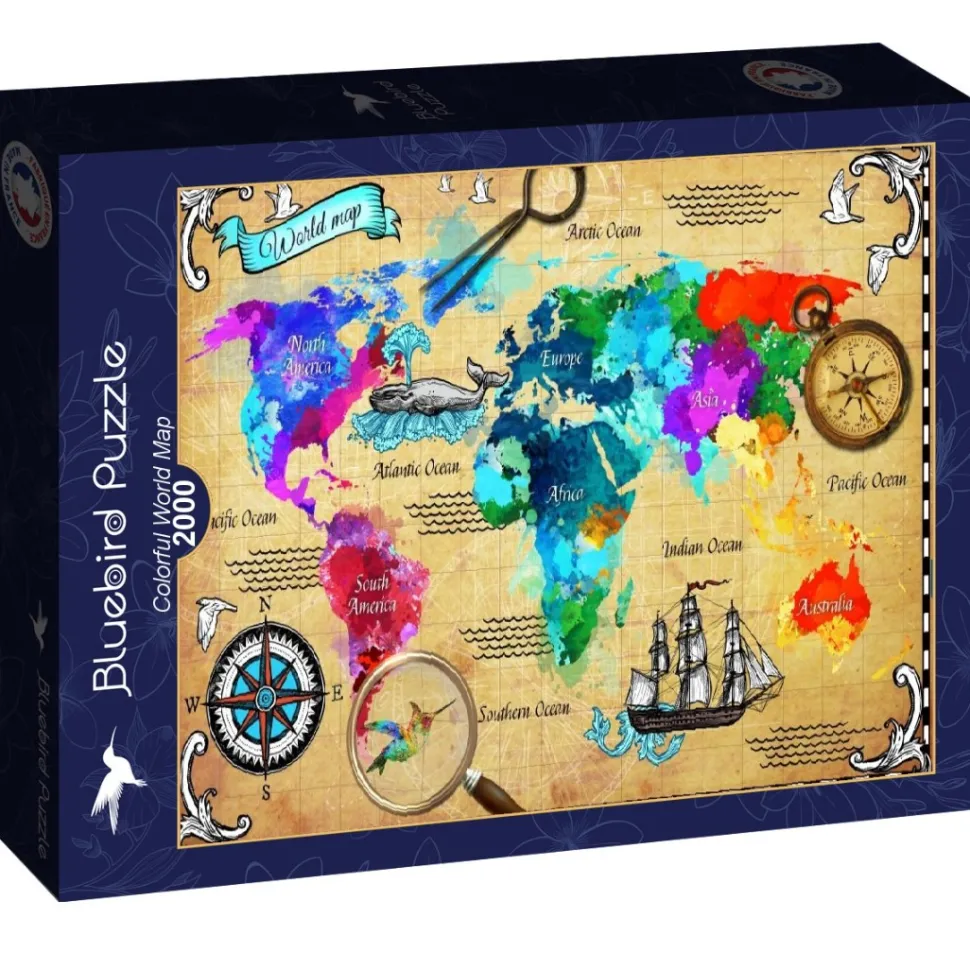Bluebird – Legpuzzel – Colorful World Map – 2000 stukjes