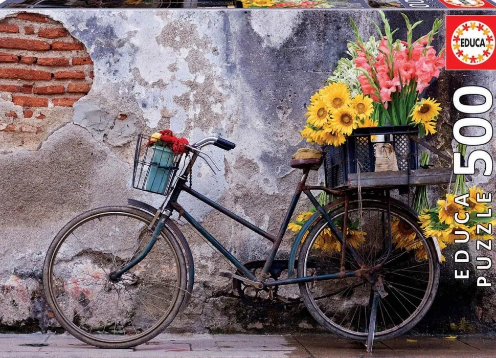 Deze legpuzzel van Educa Fiets met Bloemen telt 500 stukjes.