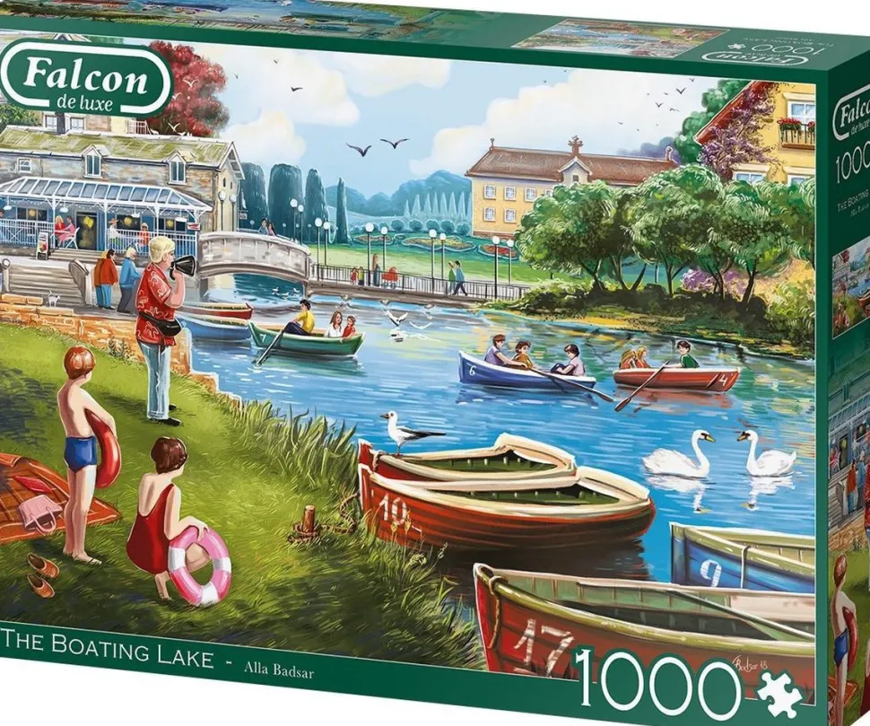 De premium de luxe-serie van Falcon werd in de jaren zeventig geïntroduceerd. Falcon is een merknaam van Jumbo, Nederlandsfabrikaat dus, dat oorspronkelijk speciaal voor de Engelstalige landen werd gevoerd. De artiesten van de Falcon legpuzzels komen daardoor ook met name uit het Verenigd Konkrijk, zoals Debbi Cook, Steve Crisp, Sarah Adams, Claire Comerford, Anne Scarle en vele anderen. Falcon maakt puzzels met een opvallende blauwe achterzijde en past unieke druk- en snijtechnieken toe – voor fraai afgewerkte afbeeldingen van hoge kwaliteit en met uiteenlopende thema’s, zoals deze The Boating Lake. Er zijn verschillende onderwerpen, bijvoorbeeld uiterst gedetailleerde cottages, nostalgische platteland taferelen en andere opvallende beelden. De Falcon puzzels zijn ontworpen en geproduceerd met passie voor kwaliteit. De gelegde puzzels van Falcon toont uiteindelijk een naadloos geheel, en elk puzzelstukje is uniek. Falcon de luxe is synoniem voor kwaliteit, traditie en ongeëvenaarde keuze. Het optimale puzzelplezier beleef je met deze The Boating Lake.
