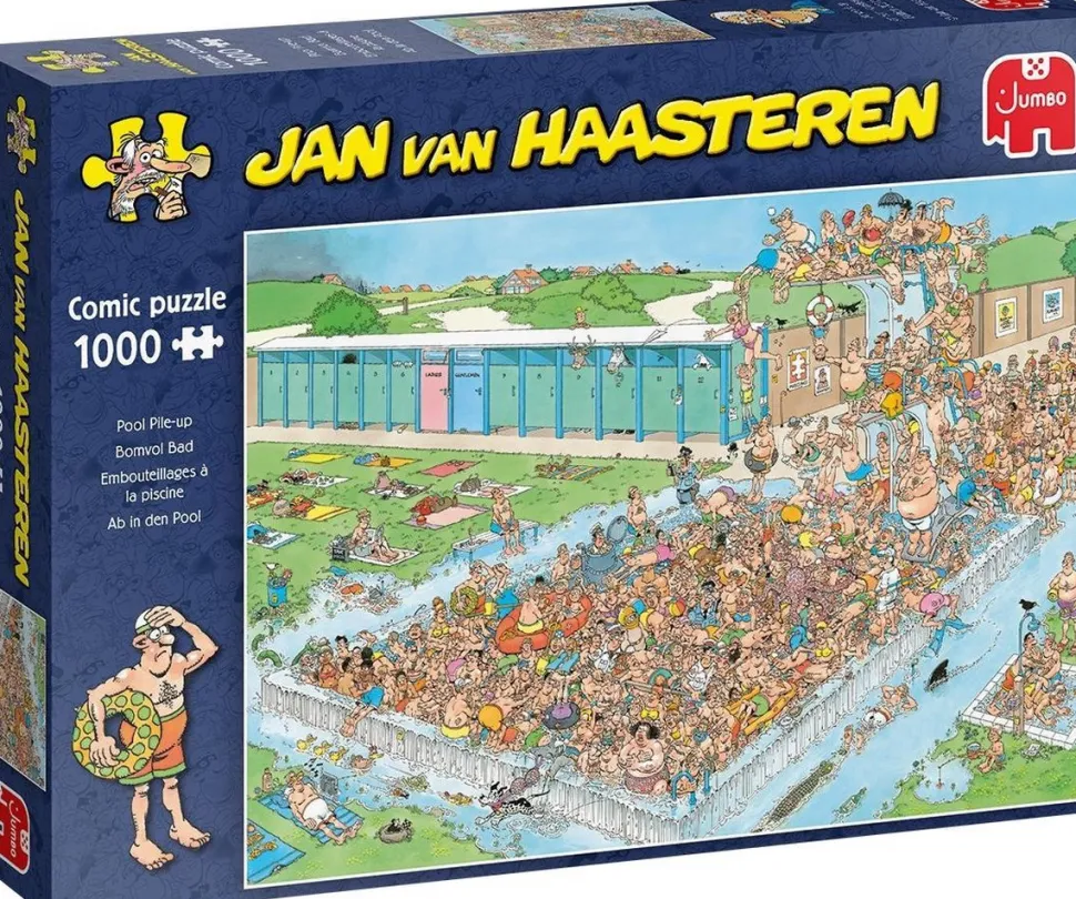 Jan van Haasteren puzzels zijn puzzels met veel kleur en details. Jan van Haasteren tekent al decennia lang humoristische platen die je steeds weer verrassen en laten lachen. De echte fans kennen de specifieke kenmerken van Jan van Haasteren en zoeken in elke puzzel direct naar de haaienvin, Sinterklaas, de handjes, het kunstgebit en Jan’s zelfportret. Jumbo heeft tientallen Jan van Haasteren puzzels in de collectie van 150 tot maar liefst 3.000 puzzelstukjes.
