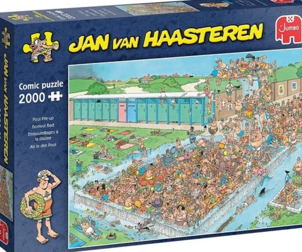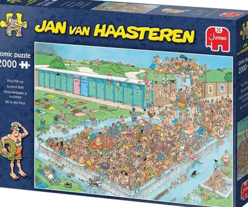 Jan van Haasteren puzzels zijn puzzels met veel kleur en details. Jan van Haasteren tekent al decennia lang humoristische platen die je steeds weer verrassen en laten lachen. De echte fans kennen de specifieke kenmerken van Jan van Haasteren en zoeken in elke puzzel direct naar de haaienvin, Sinterklaas, de handjes, het kunstgebit en Jan’s zelfportret. Jumbo heeft tientallen Jan van Haasteren puzzels in de collectie van 150 tot maar liefst 3.000 puzzelstukjes.