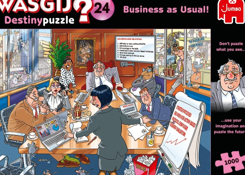 Koninklijke Jumbo ontwikkelt, produceert en verkoopt speelgoed, spellen en puzzels, zoals deze Business as Usual van Wasgij Destiny. Jumbo is een unieke Nederlandse onderneming met een rijke historie en veel eigen merken zoals Stratego, PimPamPet, Jan van Haasteren en Wasgij.