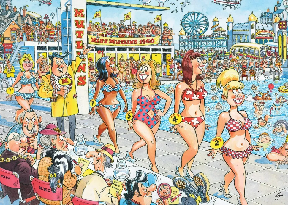 Geniet van deze badpakken parade in de jaren ’60 die de vakantiegangers aan de rand van het zwembad voorgeschoteld krijgen. Hoe worden de bezoekers vandaag de dag vermaakt? Probeer je in te beelden wat er door de tijd veranderd is; dat is het plaatje dat je moet puzzelen.