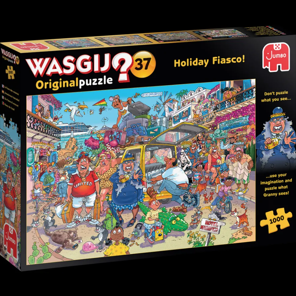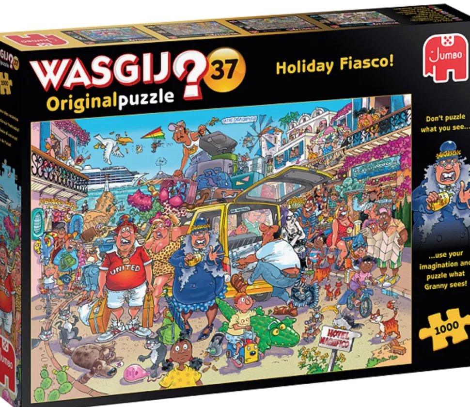 Koninklijke Jumbo ontwikkelt, produceert en verkoopt speelgoed, spellen en puzzels, zoals deze Vakantiefiasco! van Wasgij Original. Jumbo is een unieke Nederlandse onderneming met een rijke historie en veel eigen merken zoals Stratego, PimPamPet, Jan van Haasteren en Wasgij.