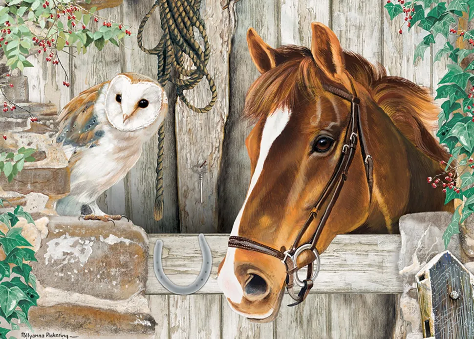 In de legpuzzel The Stable Door kijkt een paard naar buiten uit de stal waar deze naar kijkt weet alleen de uil die meekijkt.