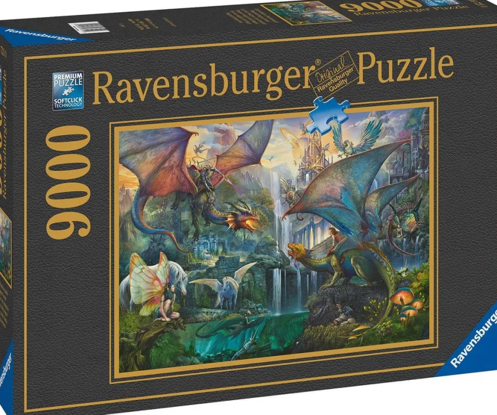 Ontsnap uit de realiteit en stap in de wereld van Ravensburger puzzels. Op het formaat van 9000 stukjes zijn de prachtige afbeeldingen van de puzzels van Ravensburger nog indrukwekkender. Dit is een project voor echte ervaren puzzelaars. Dankzij de met de hand gemaakte stansmessen is de vormvariatie van de stukjes oneindig. Jong en oud zullen genieten van deze Drakenwoud puzzel met 9000 stukjes. Ravensburger puzzel met 9000 stukjes met als thema het Draken.