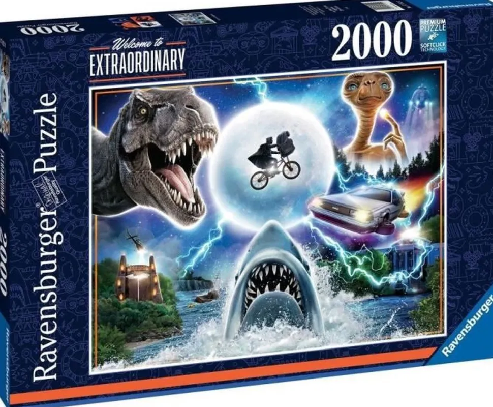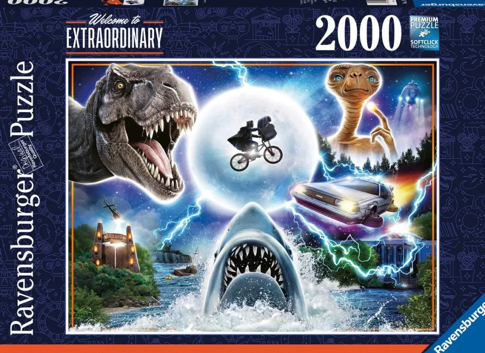 Ontsnap uit de realiteit en stap in de wereld van Ravensburger puzzels. Deze Ravensburger puzzel van 2000 stukjes is geschikt voor de ervaren puzzelaars. En omdat onze geliefde puzzels een standaard formaat hebben, kun je het resultaat inlijsten en ophangen. Dankzij de met de hand gemaakte stansmessen is de vormvariatie van de stukjes oneindig. Jong en oud zullen genieten van deze Universal & Amblin puzzel met 2000 stukjes.