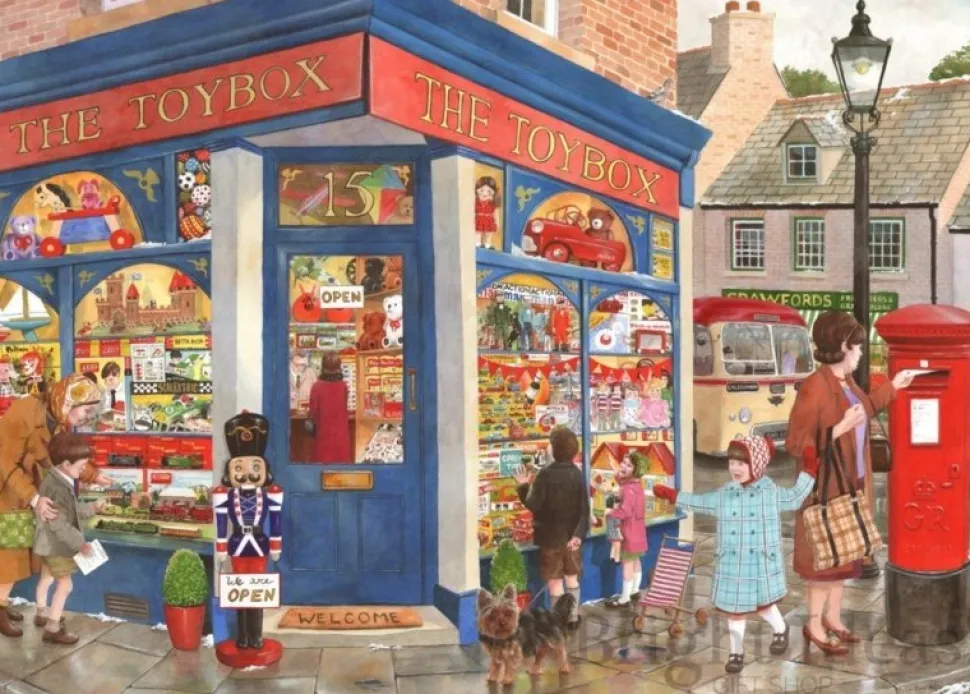 De legpuzzels van het Engelse puzzelmerk The House of Puzzels, veelal afgekort tot HOP, onderscheiden zich op twee belangrijke punten van alle andere puzzelmerken. Zoals ook deze Toybox Toys van 1000 stukjes. Het eerste kenmerk is de bijzonder gevormde legpuzzelstukjes. Als je eenmaal een fan bent van deze stukjes dan wil je niet meer anders. Het is echt heel leuk puzzelen. Het tweede kenmerk is dat alle afbeeldingen van de puzzels vallen in het segment Nostalgie. De afbeeldingen brengen je terug in de tijd. Een warme tijd, een tijd van er voor elkaar zijn. Een tijd van familie en traditie. De verhalen van vroeger komen tot leven tijdens het puzzelen. Er zijn twee zeer uitgebreide puzzellijnen met extra grote grote stukken. De 500 XL en de 250 XL. Vooral de 250 XL puzzels zijn uitermate geschikt voor de wat ouderen onder ons. Met deze puzzels wordt ook veel in Verpleeghuizen gepuzzeld. Elk jaar brengt HOP voor kerstmis een unieke kerstpuzzel uit. Dit is de Christmas Collectors Editie. In deze puzzels (uitvoering 500 en 1000 stukjes) zitten uniek gevormde kerststukjes. Veel leuker kan een kerstpuzzel maken echt niet worden
